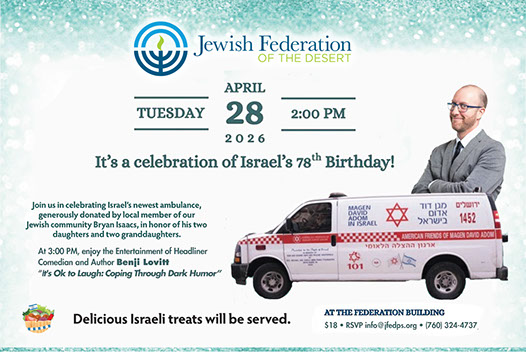 Every day, the Jewish Federation of the Desert sparks connection and collaboration, rallying hearts and hands to tackle the toughest challenges facing our Jewish community. When calm prevails or crisis strikes, we rise—together—driven by unity, compassion, and the strength of our partnerships.